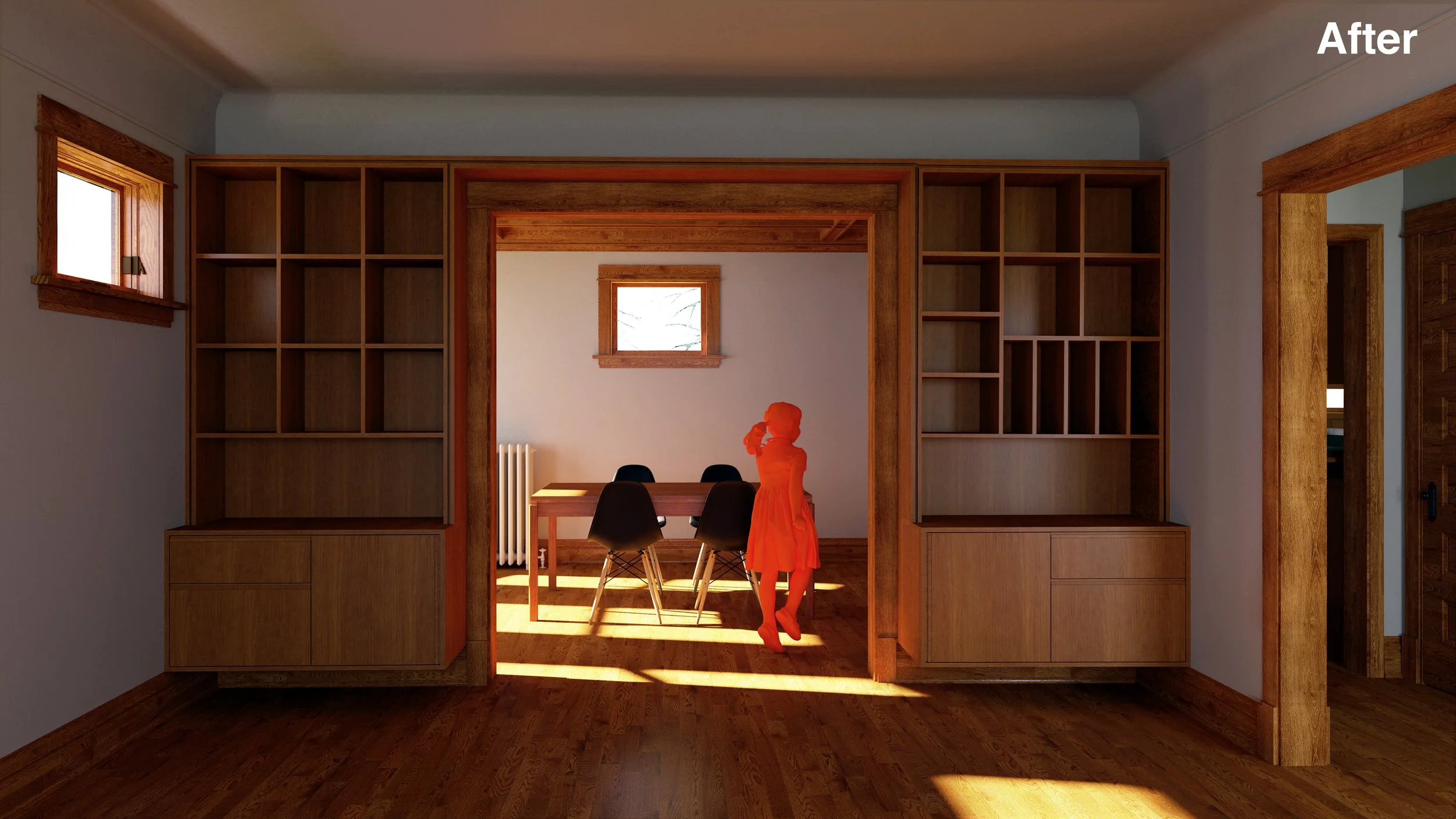 As a mono-medium investigation into expanded habitable space within the tight constraints of a classic American Foursquare, this project draws inspiration from the Prairie and Craftsman wood detailing characteristic of Oak Park, IL.